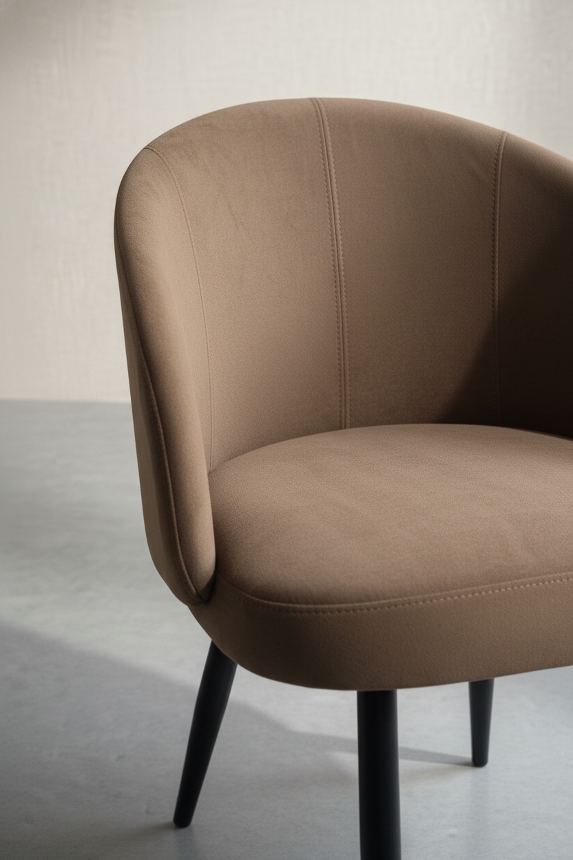 Ergonomik kavisli sırt yapısı ve modern tasarımıyla öne çıkan bu sandalye, hem estetik hem de konforu bir araya getiriyor. Dayanıklı metal ayakları ve yumuşak dokulu döşemesi ile yemek odaları, kafeler ve çalışma alanları için mükemmel bir tercihtir.