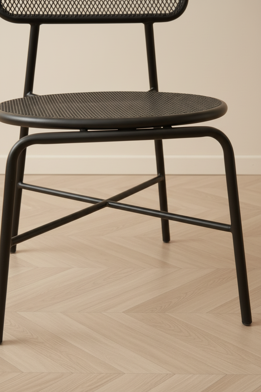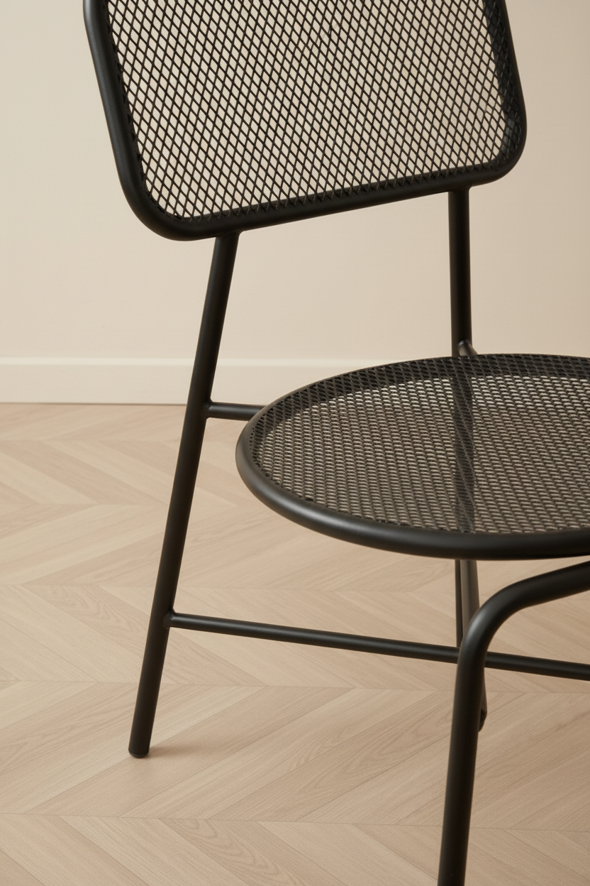 Dayanıklı metal gövdesi ve estetik delikli file dokusuyla hem iç hem dış mekan kullanımına uygun, modern ve endüstriyel tarza sahip şık bir sandalye. Minimalist hatları ve sağlam yapısı sayesinde uzun ömürlü bir kullanım sunar.