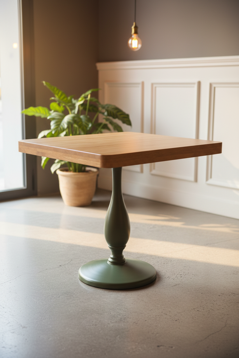 Profesyonel işletmeler, mimarlar ve satınalma müdürleri için tasarlanmış, performansı ve estetiği birleştiren bu model, mekanınızın premium algısını güçlendirir. Müşteri deneyiminde kritik rol oynayan stabilite ve konforu, zarif ve bombeli tek döküm ayak tasarımıyla garanti altına alır. Bu sayede, zeminde dengeyi korur ve masa sallanması kaynaklı müşteri şikayetlerini sıfırlar. Doğal ahşap görünümlü dayanıklı tabla yüzeyi, en yoğun kafe ve restoran trafiğine karşı dirençlidir. Kolay temizlenebilirlik özelliği sayesinde hijyen standartlarınızı hızla karşılarken, operasyonel temizlik maliyetlerinizi düşürür. Uzun ömürlü yapısı, sık mobilya yenileme ihtiyacını ortadan kaldırarak işletmeniz için maksimum yatırım getirisi (ROI) sağlar. Klasik ve zamansız tasarımı, yenileme projelerinizde esneklik sunar.